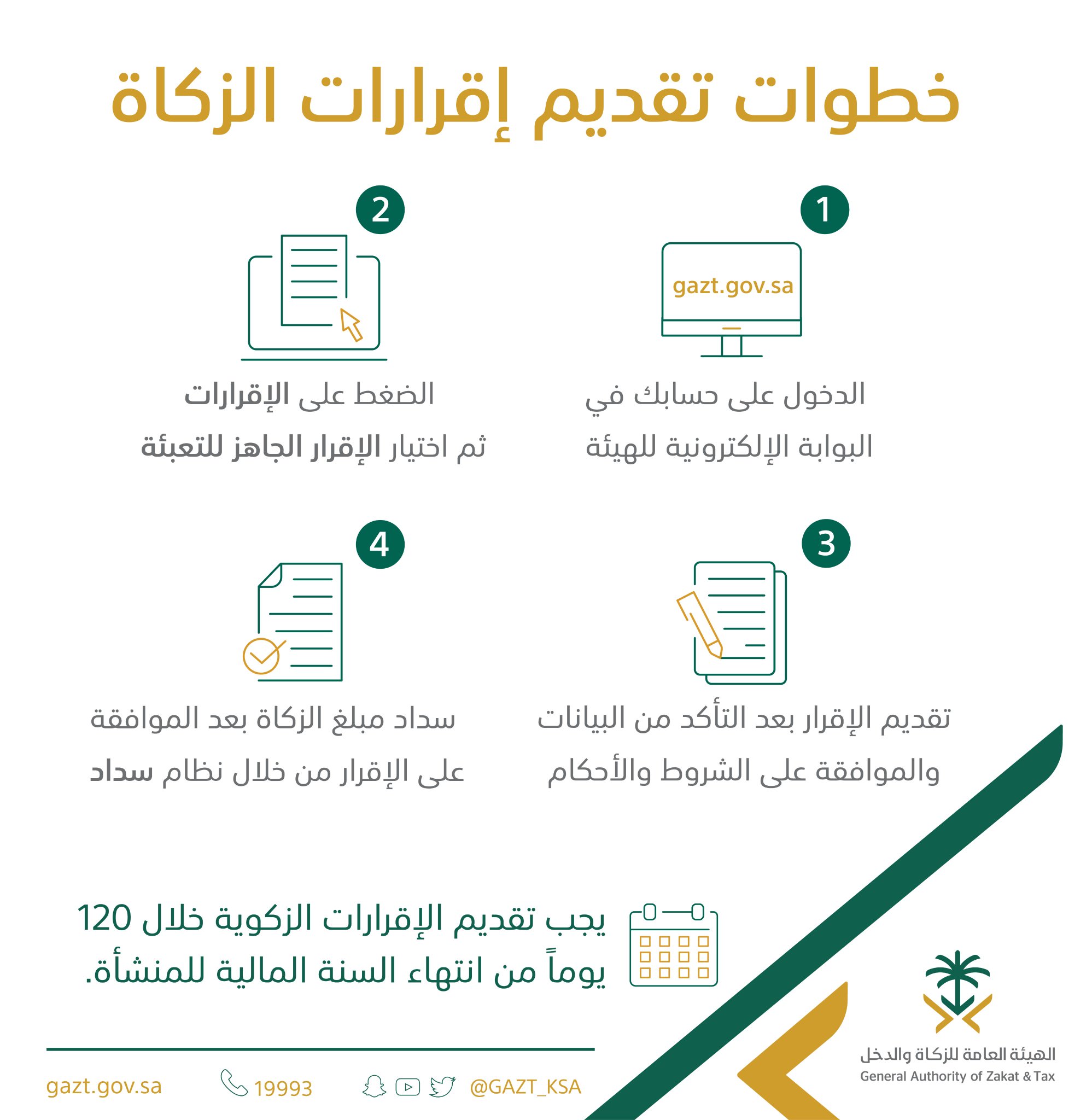 الهيئة العامة للزكاة والدخل On Twitter يجب على كل منشأة خاضعة للزكاة تقديم إقراراتها الزكوية خلال 120 يوما بعد انتهاء السنة المالية للمنشأة وذلك باتباع الخطوات التالية معلومة زكوية Https T Co Uoe8cnw2s7