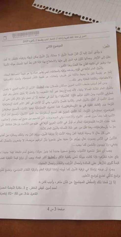 موضوع اللغة العربية بكالوريا 2019 آداب و فلسفة Bac 2019
