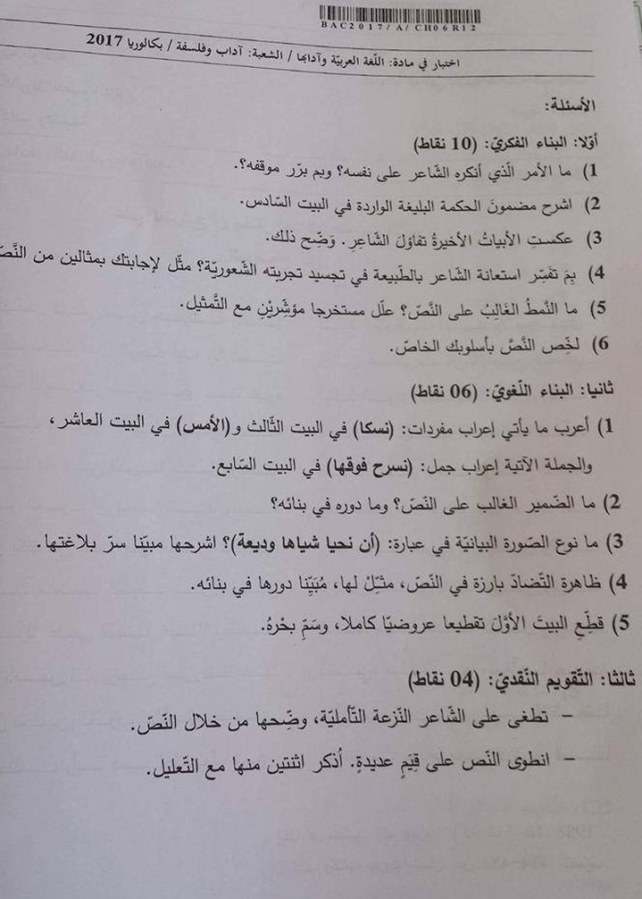 موضوع اللغة العربية بكالوريا 2017 شعبة آداب و فلسفة Bac نصائح تربوية
