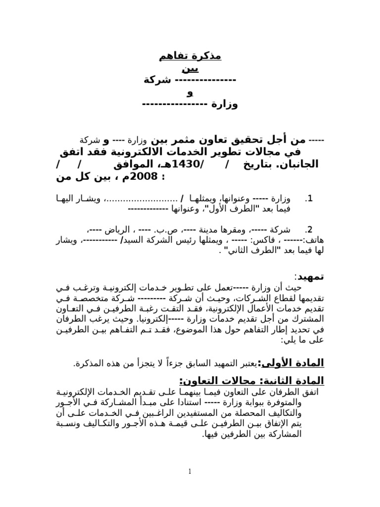 نموذج مذكرة تفاهم بين شركتين او شركة خاصة ومؤسسة عامة موارد بشرية