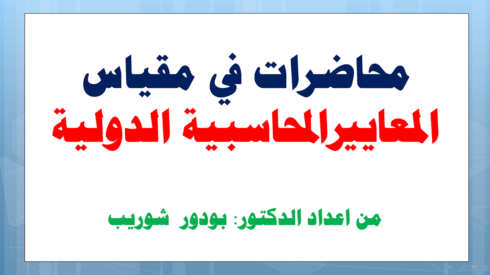 محاضرات في مقياس المعاييرالمحاسبية الدولية من اعداد الدكتور بودور شوريب