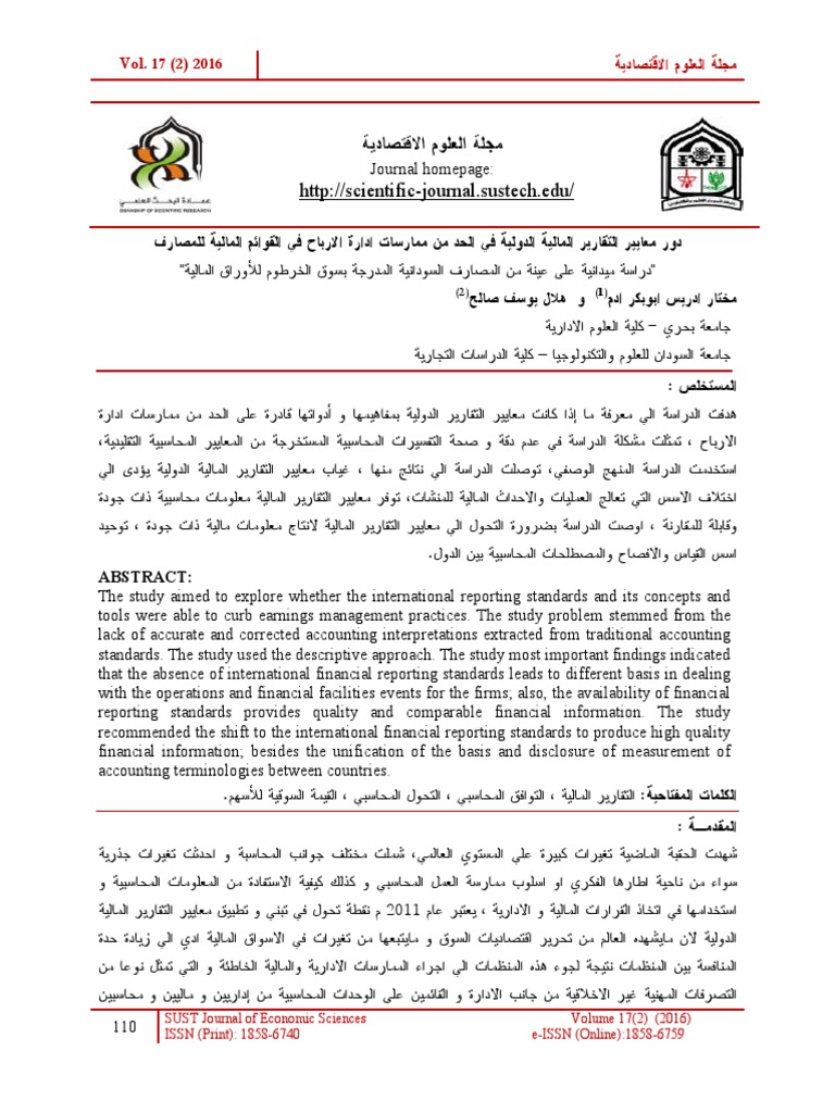 دور معايير التقارير المالية الدولية في الحد من ممارسات ادارة الارباح في القوائم المالية للمصارف Pdf Business