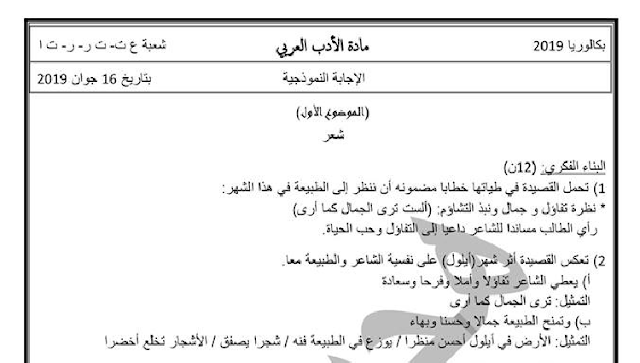 تصحيح موضوع اللغة العربية بكالوريا 2019 جميع الشعب