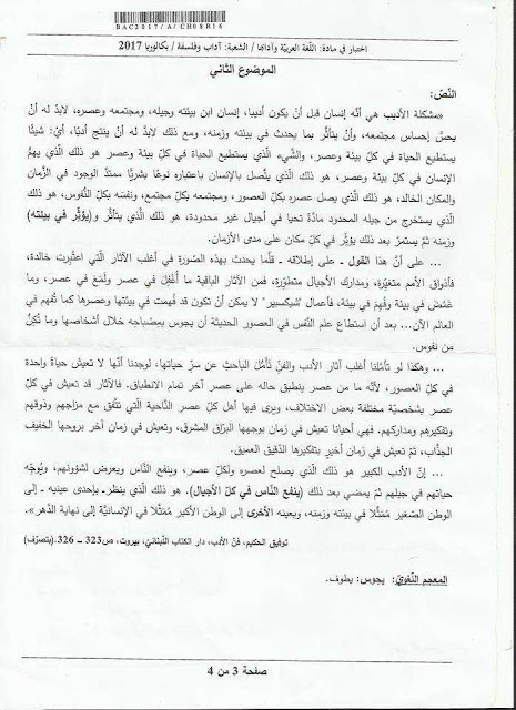 موضوع اللغة العربية بكالوريا 2018 شعبة آداب وفلسفة Bac 2020 البكالوريا
