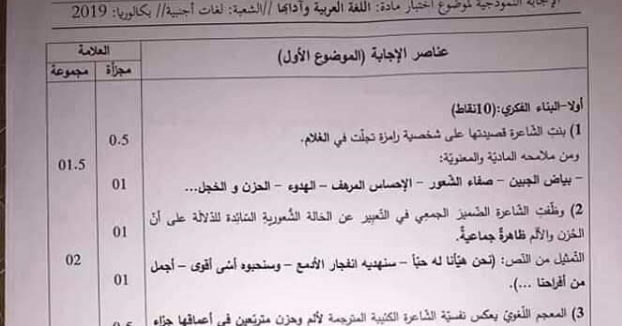 تصحيح موضوع بكالوريا 2019 في اللغة العربية شعبة آداب و فلسفة موقع الدراسة الجزائري