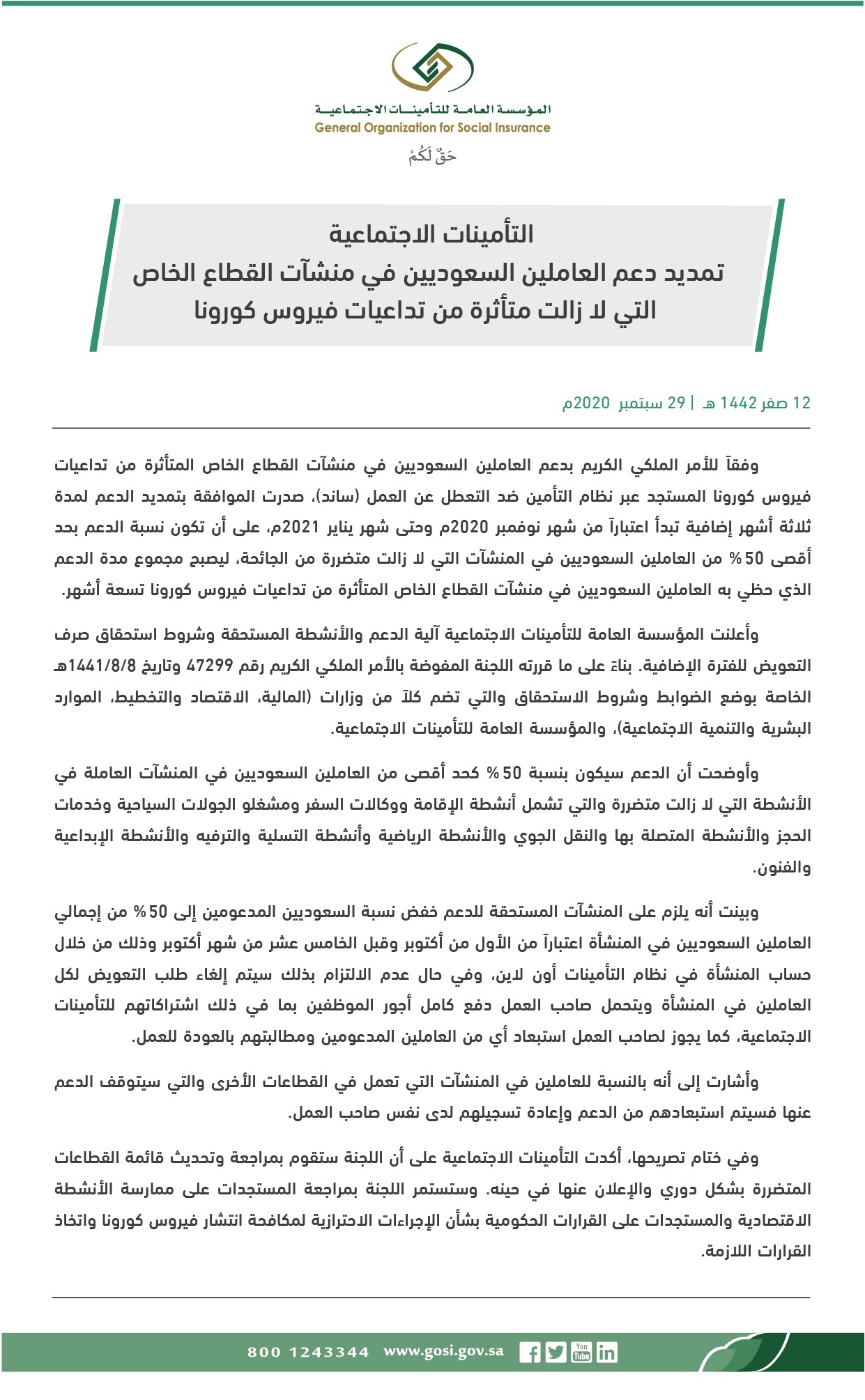 التأمينات الاجتماعية موعد صرف تعويض ساند دعم القطاع الخاص والمستفيدين 1441 خبرنا