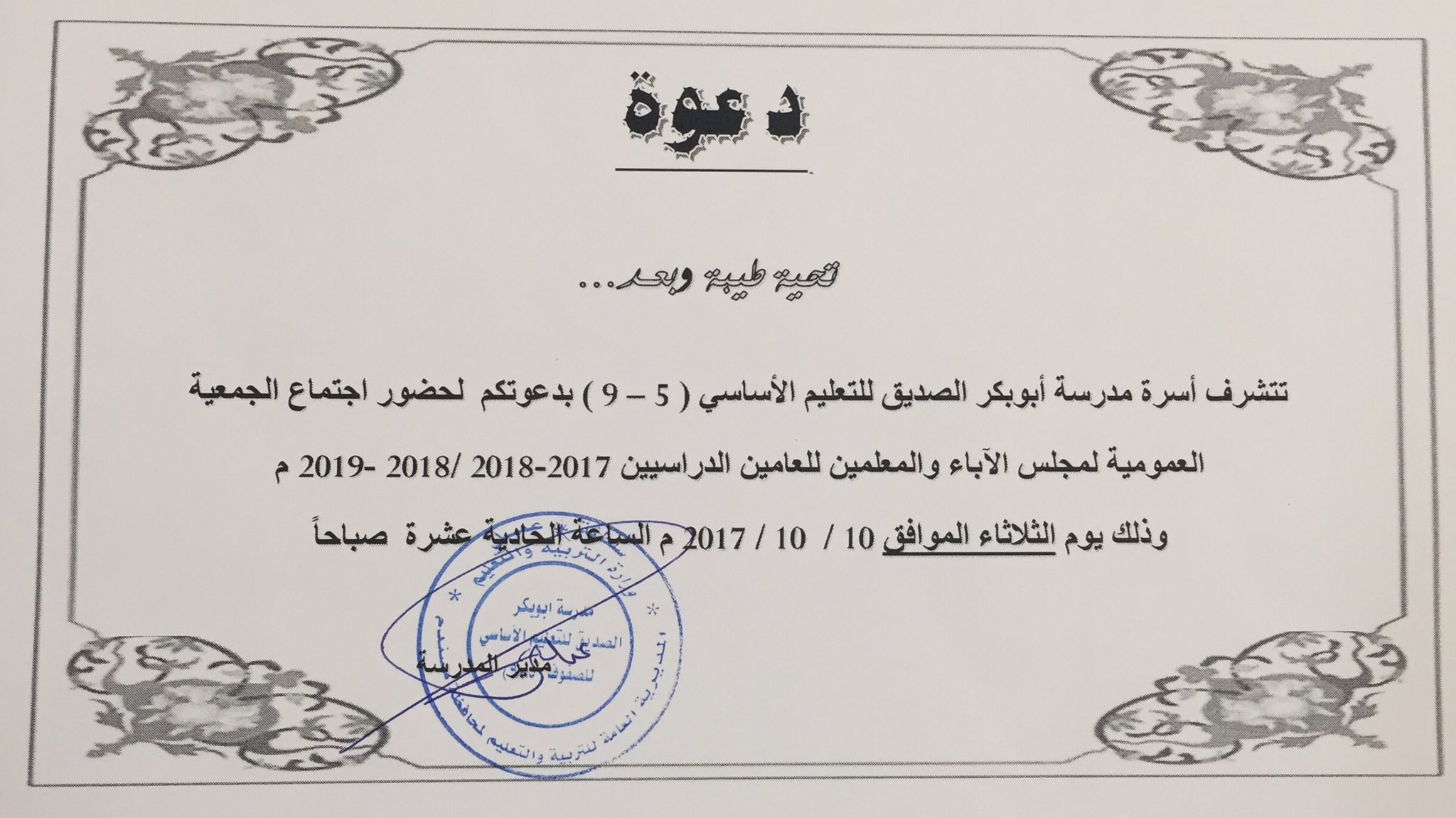 مدرسة أبو بكر الصديق Ar Twitter دعوة لحضور اجتماع الجمعية العمومية لمجلس الآباء والمعلمين