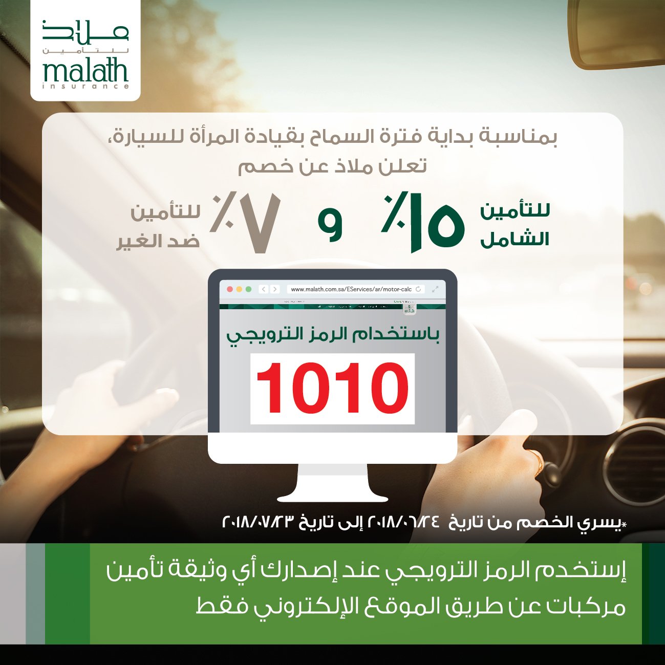 ملاذ للتأمين On Twitter ملاذ للتأمين تتفاعل مع قيادة المرأة ابتداء من تاريخ اليوم 10 10 1439 وتقدم خصم خاص لوثائق تأمين المركبات الشامل و ضد الغير عبر موقعها الالكتروني فقط