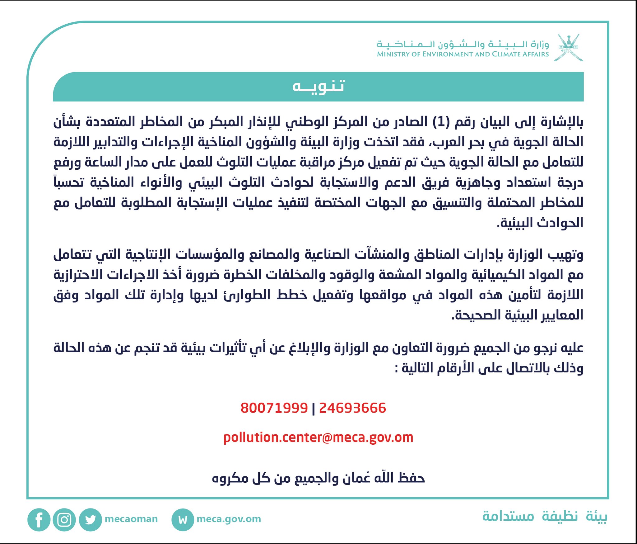 هيئة البيئة ع مان On Twitter تنويه من وزارة البيئة والشؤون المناخية بشأن الحالة المدارية في بحر العرب عمان مستعدة
