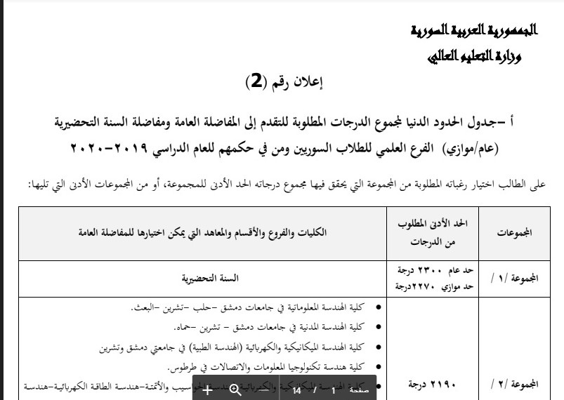 ظهرت رسميا عبر القبول الجامعي Mof Sy نتائج المفاضلة 2019 سوريا Link موقع وزارة التعليم العالي لإستخراج نتائج المفاضلة العامة 2019 برقم الاكتتاب أحداث اليوم