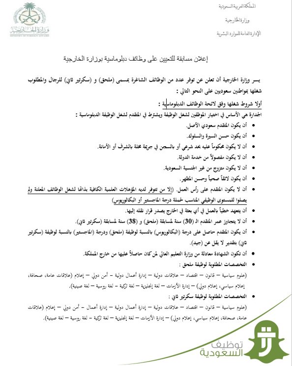 وظائف وزارة الخارجية السعودية 2019 2020 وظائف السعوديه وظائف شاغرة فى السعوديه توظيف السعوديه