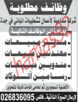 للعمل فى جدة وظائف جريدة المدينة السبت 1جمادى الاولى 1433 وظائف السعوديه