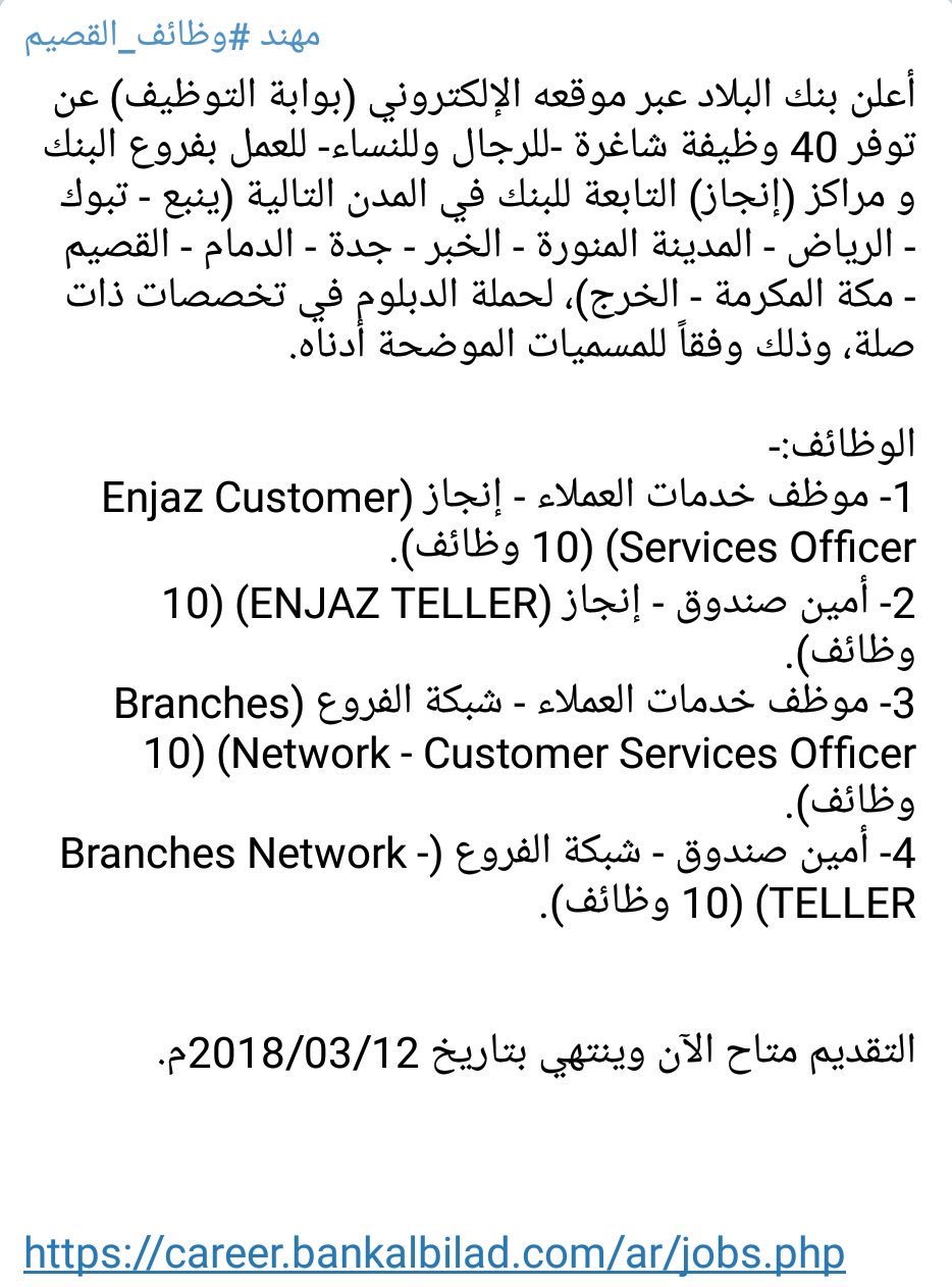 بنك البلاد توظيف رابط التقدم في وظائف بنك البلاد 40 وظيفة متاحة الان ثقفني