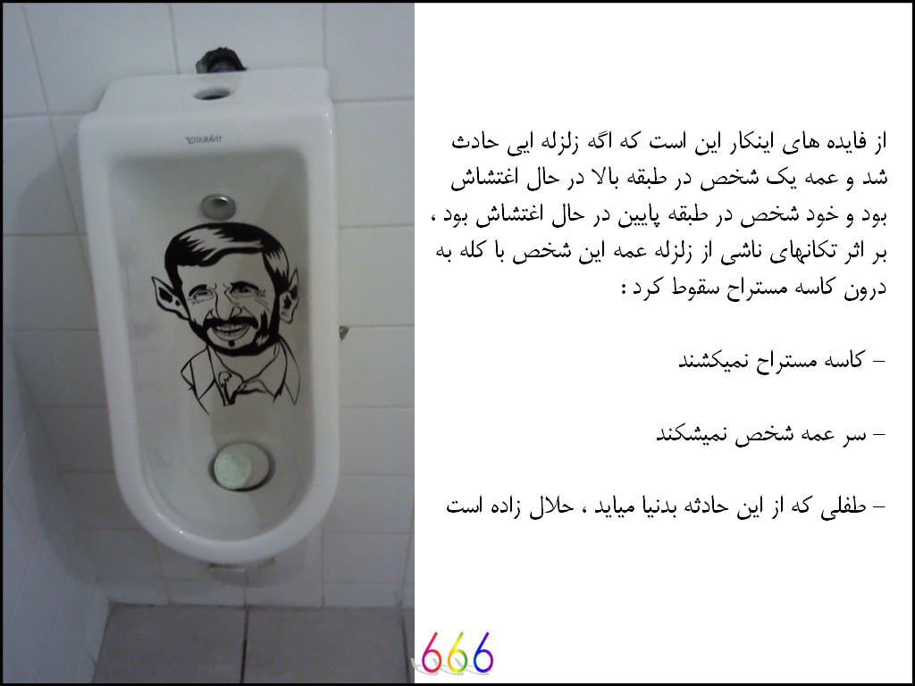666 سبز از فایده های حک کردن عکس احمدی نژاد در کاسه توالت